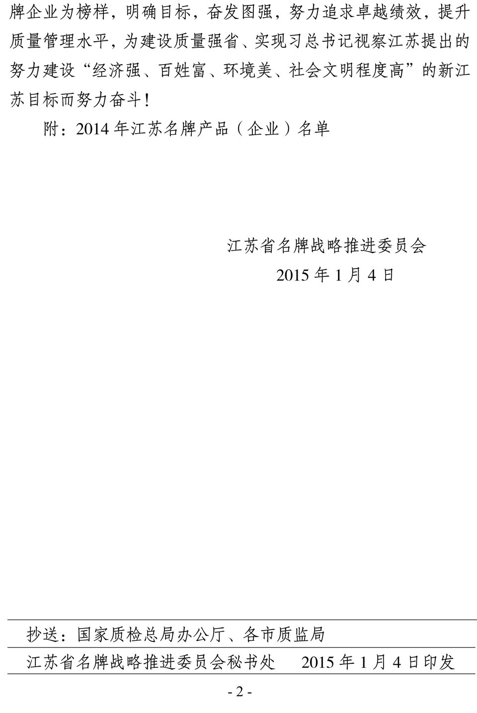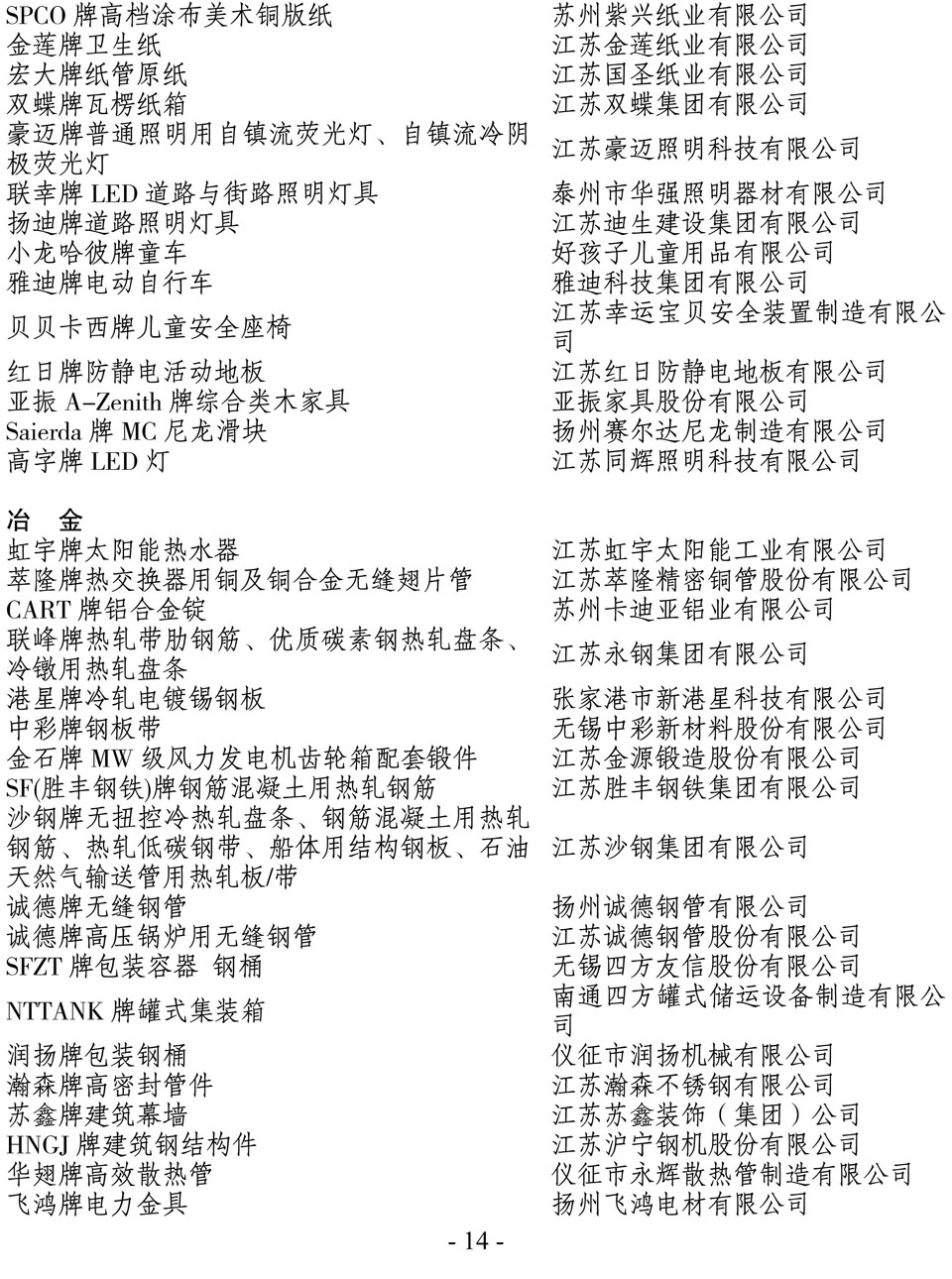 日前,江蘇省名牌戰(zhàn)略推進委員會公布了2014年江蘇省名牌產(chǎn)品名單,“