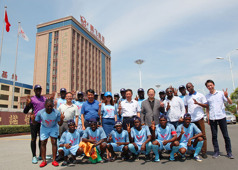 恰逢江蘇鵬飛集團與*達成建設年產100萬噸水泥粉磨站項目合同,應江蘇鵬飛集團的邀請,7月15日*U17隊來到海安,并在海安城南實驗中學與我縣教育聯隊舉行一場國際足球友誼賽,本次比賽由江蘇鵬飛集團全程贊助。時值盛夏,天氣炎熱,但一點也不影響比賽的順利進行,球員的激情和觀眾的熱情充盈整個賽場,場面和諧融洽,雖為比賽,實則是相互交流學習,充分發(fā)揮了友誼第一,比賽第二的精神。此次友誼賽是我縣本土球隊首次與國際球隊接洽,在比賽中也讓我縣教育聯隊受益匪淺、感觸頗深,對今后青少年校園足球教育大有裨益。比賽結束后,董事長王家安帶領*U17足球隊員參觀了鵬飛集團生產基地,并舉行座談及饋贈禮品,簡單的一場足球賽,卻為譜寫中非友誼添上實實在在的一筆。
