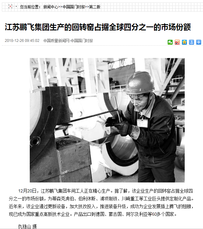 12月20日,江蘇鵬飛集團車間工人正在精心生產(chǎn)。據(jù)了解,該企業(yè)生產(chǎn)的回轉(zhuǎn)窯占據(jù)全球四分之一的市場份額,為蒂森克虜伯、伯利休斯、浦項制鐵、川崎重工等工業(yè)巨頭提供定制化產(chǎn)品。近年來,該企業(yè)通過更新設備,加大技改投入,推進裝備升級,成功為企業(yè)發(fā)展插上騰飛的翅膀,現(xiàn)已成為國家重點高新技術企業(yè)。產(chǎn)品出口到德國、蒙古國、阿爾及利亞等60多個國家。