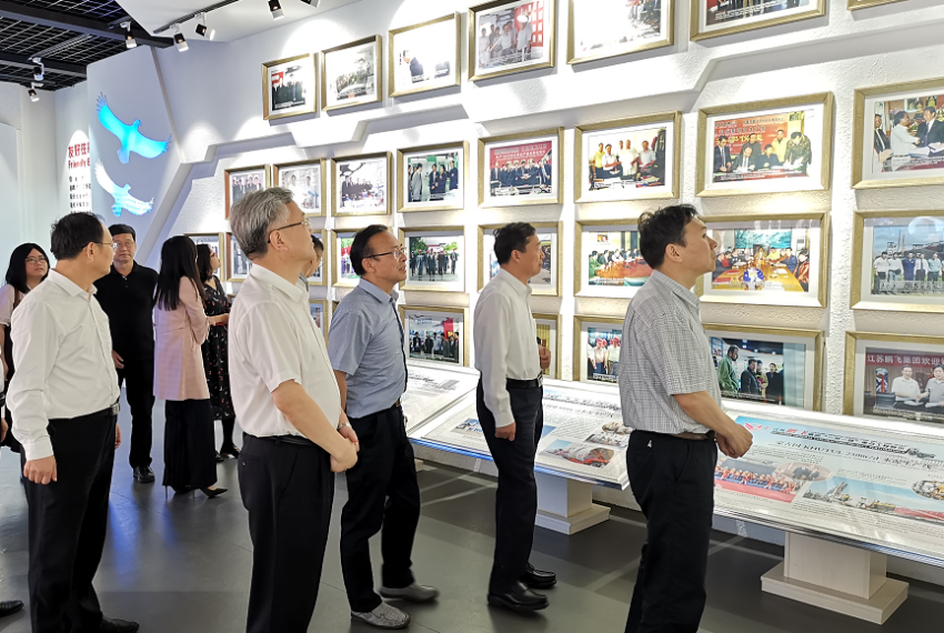 江蘇鵬飛集團股份有限公司董事長王家安帶領調(diào)研組一行,參觀了生產(chǎn)車間和展廳,向調(diào)研組介紹企業(yè)國內(nèi)外發(fā)展定位及在“一帶一路”沿線國家落地項目的概況,向調(diào)研組介紹企業(yè)現(xiàn)階段發(fā)展狀況、海外項目運行情況及企業(yè)未來發(fā)展愿景。