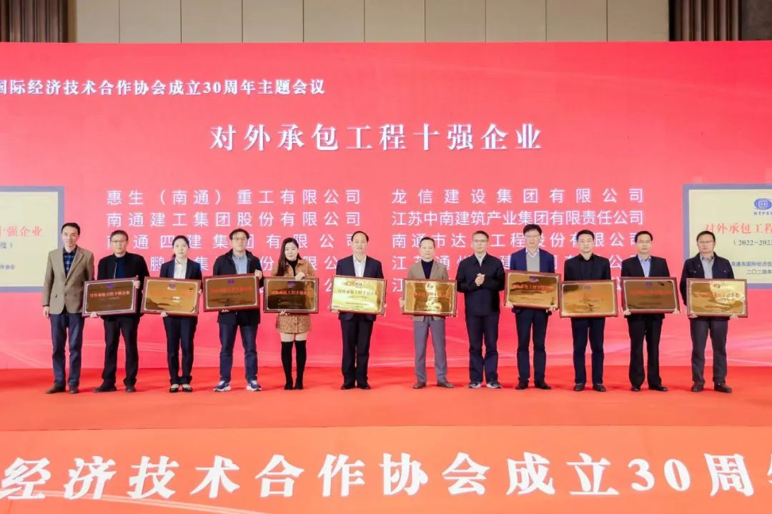 大會通報了《南通外經30年感動人物認定決定》、《第二批最美外經人認定決定》、2022-2023年度南通市對外投資合作企業(yè)國際化水平評價結果,南通市對外承包工程十強、對外直接投資五強、對外勞務合作五強企業(yè),南通外經協(xié)會優(yōu)秀會員企業(yè)、優(yōu)秀合作伙伴。江蘇鵬飛集團獲評南通市《對外承包工程十強企業(yè)》,董事長王家安獲評“南通外經30年感動人物”,副總經理賁道林獲評“最美外經人”,公司投稿的文章《壯麗30載,筑夢新征程》獲“我與南通市國際經濟技術合作協(xié)會”征文比賽三等獎。