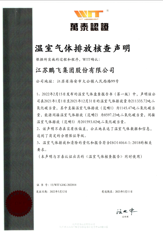 江蘇鵬飛集團(tuán)股份有限公司一直以來(lái)堅(jiān)持綠色采購(gòu),綠色生產(chǎn),綠色物流的原則,積極響應(yīng)并參與相關(guān)方(政府、客戶等)節(jié)能降排、碳排放報(bào)告活動(dòng)。