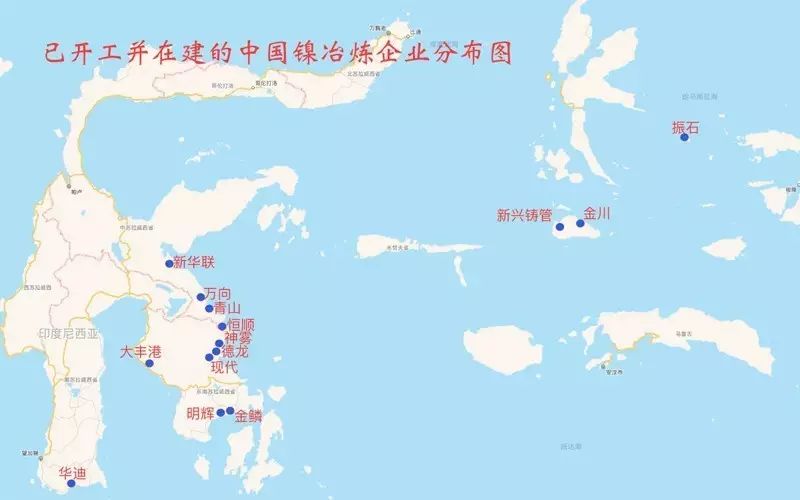 中國(guó)鎳冶煉企業(yè)項(xiàng)目在印尼分布