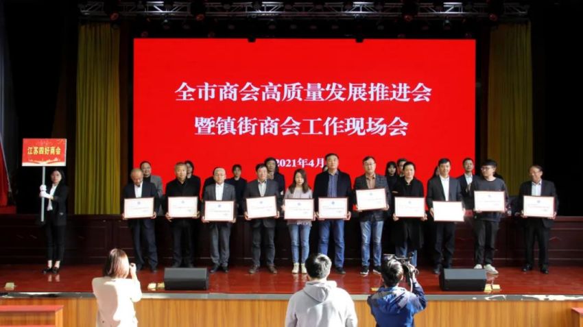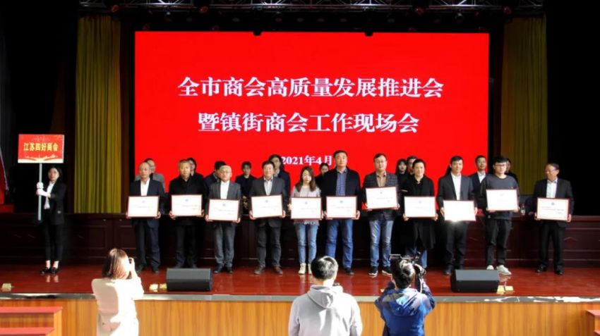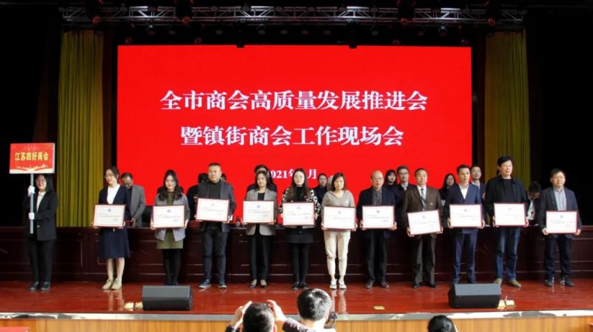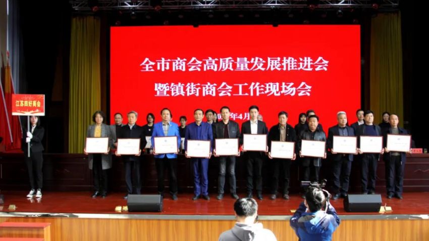為學(xué)習(xí)貫徹中央、省商會(huì)工作會(huì)議精神,加快推進(jìn)全市商會(huì)基層組織建設(shè),推進(jìn)商會(huì)組織高質(zhì)量發(fā)展。4月19日下午,南通市工商聯(lián)(總商會(huì))在我鎮(zhèn)隆重召開“全市商會(huì)高質(zhì)量發(fā)展推進(jìn)會(huì)暨鎮(zhèn)街商會(huì)工作現(xiàn)場會(huì)”。南通市政府副市長、一級(jí)巡視員趙聞斌,江蘇省工商聯(lián)黨組成員、副主席李曉林,南通市委統(tǒng)戰(zhàn)部副部長、市工商聯(lián)黨組書記王虎,海安市委常委、組織部長、統(tǒng)戰(zhàn)部長張明星,南通市工商聯(lián)黨組成員、副主席羅加宏,海安市政協(xié)副主席、工商聯(lián)主席、總商會(huì)會(huì)長蔡祝平,大公鎮(zhèn)黨委書記金山存,黨委副書記、鎮(zhèn)長魯競等參加活動(dòng)。出席會(huì)議的還有省工商聯(lián)、市民政局相關(guān)處室領(lǐng)導(dǎo),各縣(市)區(qū)委統(tǒng)戰(zhàn)部分管副部長、工商聯(lián)主要負(fù)責(zé)人及分管領(lǐng)導(dǎo),全市各鎮(zhèn)街(園區(qū))統(tǒng)戰(zhàn)委員,商會(huì)會(huì)長代表,受表彰的全國抗疫先進(jìn)典型,全國、省、市四好商會(huì),榮獲全市商會(huì)十大工作品牌的商會(huì),商會(huì)十佳會(huì)長,十佳秘書長,部分市直商(協(xié))會(huì)主要負(fù)責(zé)人,以及市工商聯(lián)相關(guān)部室人員共計(jì)250余人。