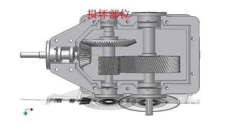 第二部分:減速機(jī)損壞維修以及后期防護(hù)。本公司四個鎖風(fēng)閥的減速機(jī)都采用弗蘭德的垂直軸減速機(jī),在鎖風(fēng)閥承受較大力矩的時候,減速機(jī)內(nèi)部各級齒輪也相應(yīng)的承受較大的力,同時由于該種減速機(jī)二級傳動軸兩側(cè)采用推力調(diào)心滾子軸承,而且軸承端蓋沒有進(jìn)行螺栓緊固,只是做了密封處理,因此在承受較大力時,也就是在鎖風(fēng)閥卡停的情況下會經(jīng)常出現(xiàn)將兩側(cè)軸承端蓋頂開的情況,浪費(fèi)潤滑油,增加生產(chǎn)風(fēng)險(如圖三)。