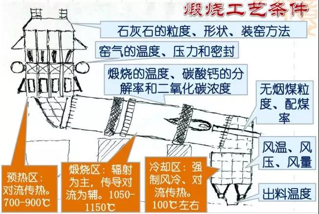 石灰石的煅燒分為三個(gè)區(qū)段:預(yù)熱區(qū);煅燒區(qū);冷卻區(qū)。石灰石煅燒過程大致分4個(gè)步驟:開始分解前的膨脹;碳酸鈣的分解;石灰石的燒結(jié);石灰的冷縮。此外根據(jù)石灰石煅燒工藝,可分為并流煅燒和逆流煅燒。