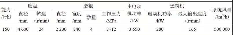 表1 JLMS-46.4立磨主要技術(shù)參數(shù)