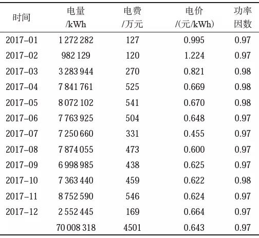 表1 2017年用電統(tǒng)計