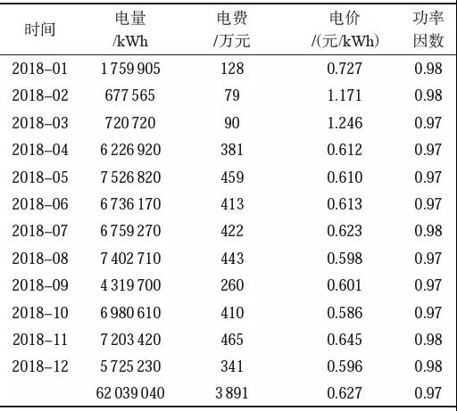 2018年的平均電價與2017年全年相比,在功率因數(shù)不變的情況下,單位電價下降了0.016元/kWh,2018年為企業(yè)節(jié)約電費(fèi)支出99萬余元。