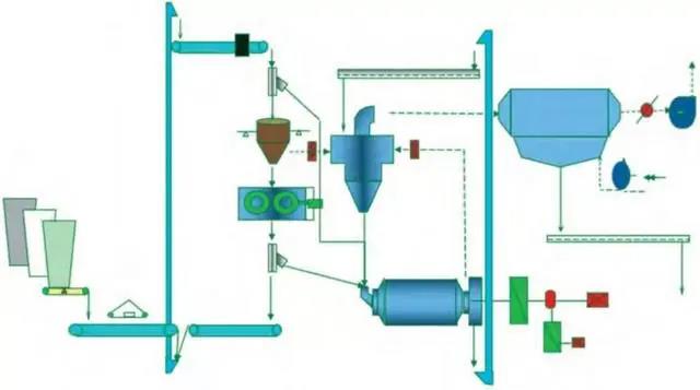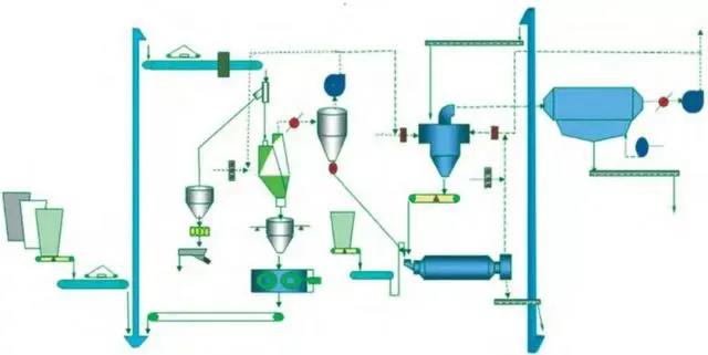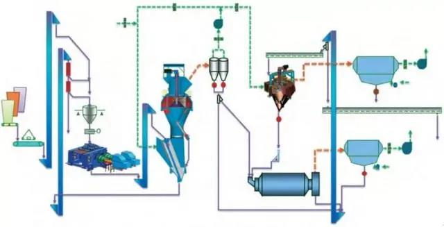 該系統(tǒng)工藝簡單,設備少,維護工作量少,水泥成品全部經(jīng)過球磨機粉磨,成品粒度分布較寬,水泥性能穩(wěn)定。