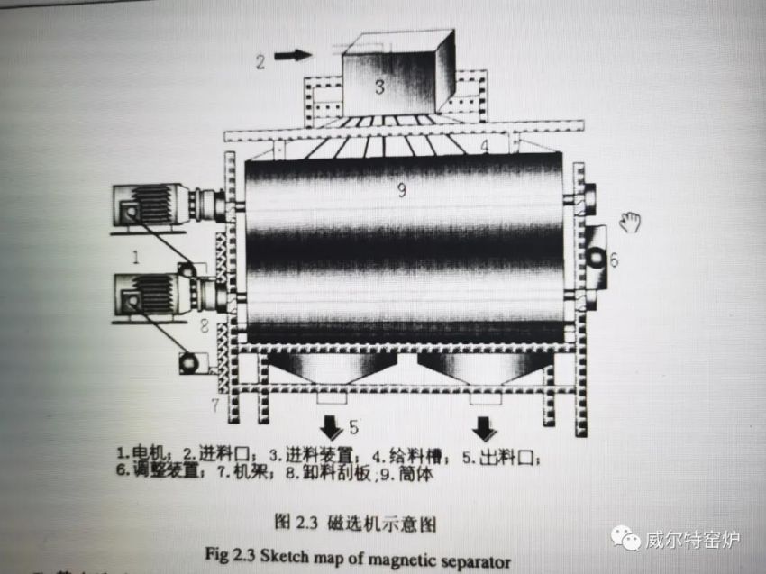 炙熱的菱鐵礦如果接觸氧氣很容易轉化為r-Fe2O3 ,甚至弱性的a-Fe2O3 ,導致弱磁選困難,為了防止焙燒礦在出窯時弱磁性赤鐵礦,故焙燒礦出窯方案設計為水封拉鏈水冷,出水溫度一般為70°C 左右。然后進料倉,再經過磨碎分級進行磁選,選出精礦粉。
