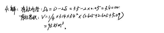 4、已知某φ3.5m磨機(jī)襯板的厚度為0.05m,一倉長2.625m,二倉2.3625m,三倉5.09m,求該磨機(jī)的有效內(nèi)徑和有效容積。