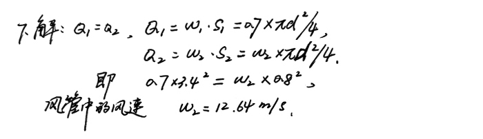 7、磨機(jī)有效直徑3.4m,測其風(fēng)速為0.7m/s,假設(shè)磨尾無漏風(fēng),磨尾風(fēng)管直徑為800mm,求風(fēng)管中風(fēng)速。