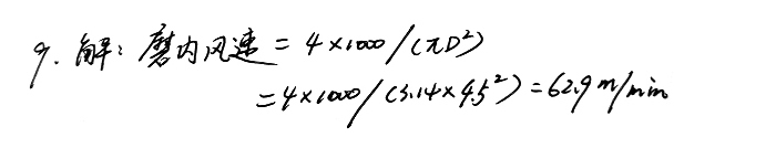 9、某廠水泥磨的通風(fēng)量為1000m3/min,磨機(jī)規(guī)格為φ4.5*15m,試計(jì)算磨內(nèi)的風(fēng)速大約是多少?