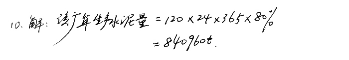 10、某廠水泥磨臺(tái)時(shí)產(chǎn)量為120t/h,問運(yùn)轉(zhuǎn)率為80%時(shí),該廠一年可以生產(chǎn)多少水泥?